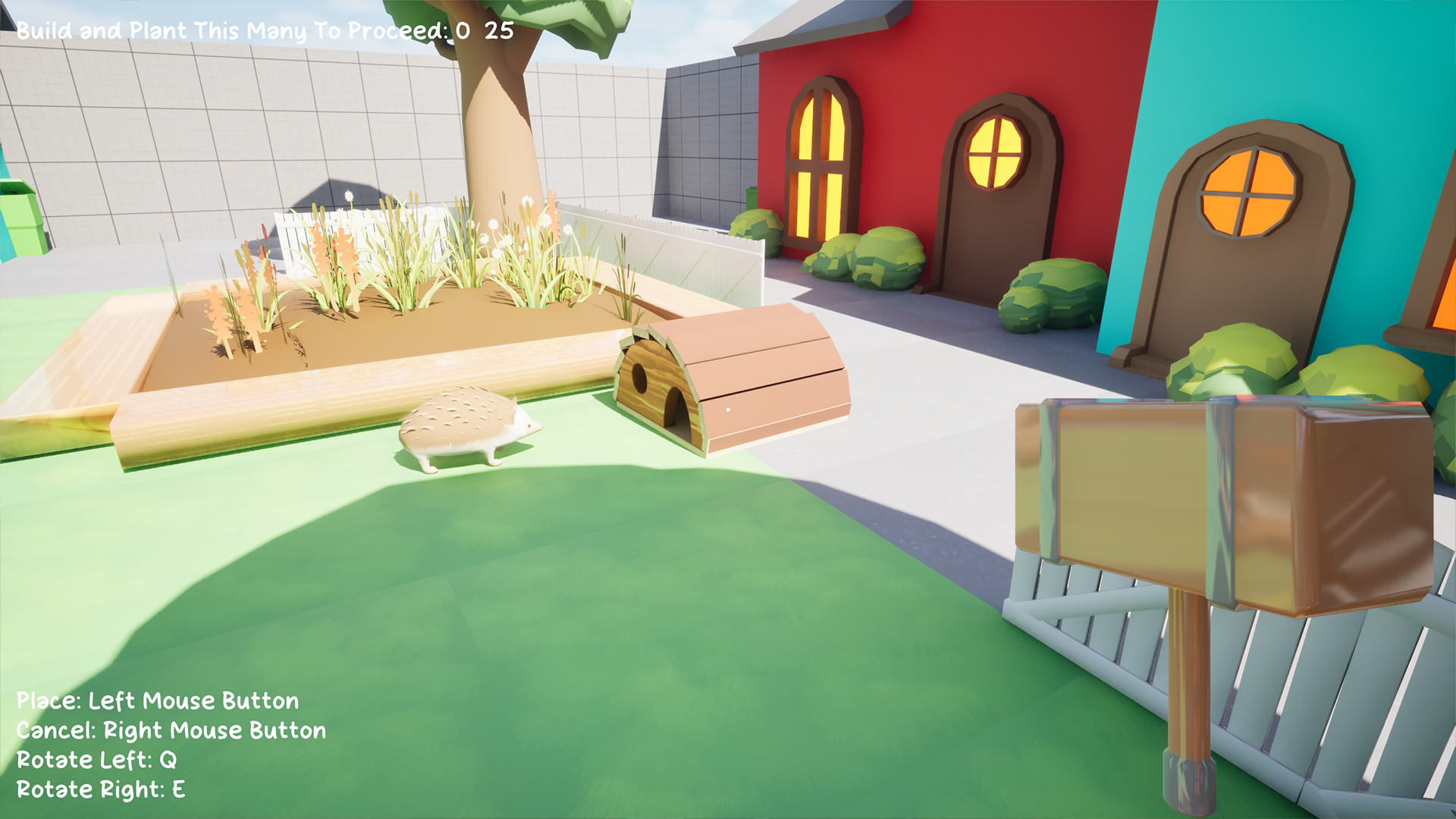 Mild Rewild is a cosy game where you participate in rewilding projects in overgrown urban locations. The goal is to clean up the place and place down items to make the area more accessible for the local wildlife! You can also remove invasive plant life to create room for healthier plants to grow. It’s a great sign when you see the world blossom with hedgehogs, rabbits, and birds all gathering to appreciate your hard work. Have fun filling out your journal, taking pictures of your discoveries, and learning more and more about the local wildlife. Keep at it and keep rewilding! This project was made as part of the Vertical Game Jam 2025 at Norwich University of the Arts.